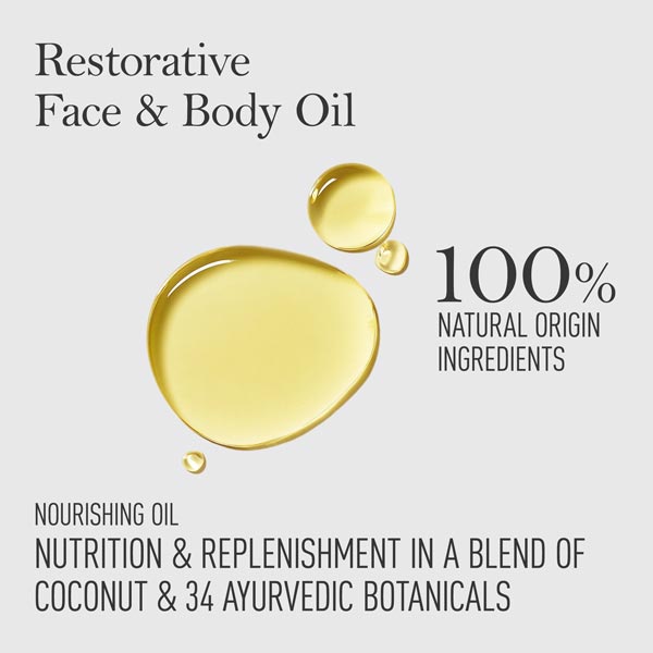 Eladhi Restorative Oil is a carefully formulated blend of 35 Ayurvedic botanicals, each selected for the benefits it brings to the skin. Coconut nourishes and restores lipids, Cardamom provides antioxidant protection, and Rose soothes and calms. Together, they work to hydrate, restore balance, and leave the skin feeling cared for.