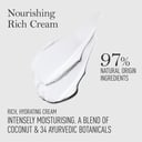 New & Improved Eladhi Nourishing Rich Cream wraps the skin in deep hydration and lasting comfort. Enriched with 35 botanicals including Cardamom, Coconut, Rose, Aloe Vera, and Glycerin, this rich cream replenishes moisture, strengthens the skin barrier, and restores smoothness.