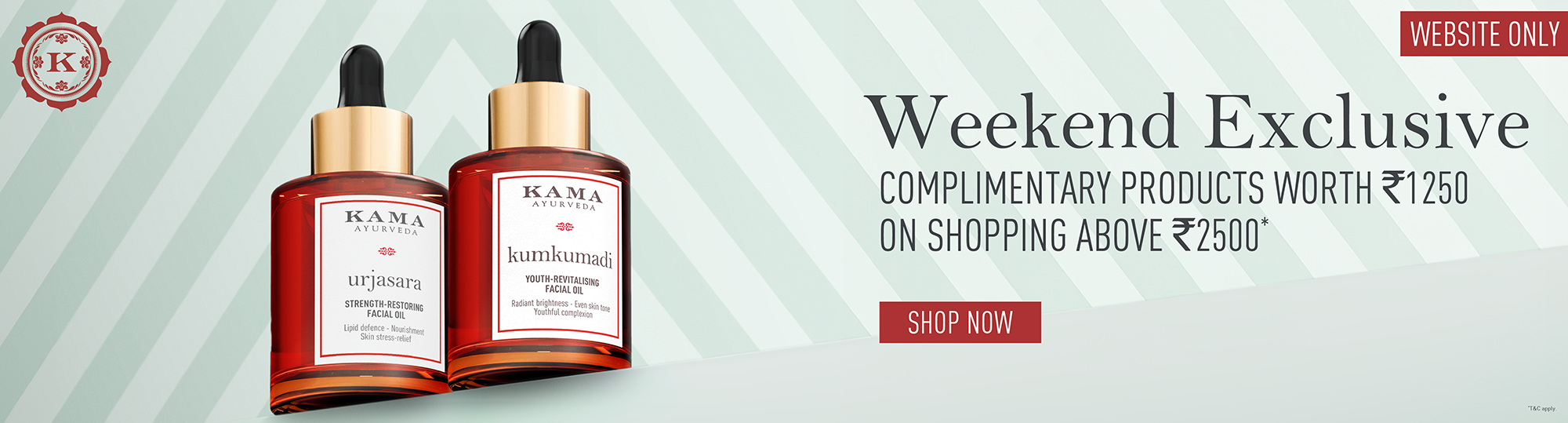 The offer will be applicable on the transactions taken only on Kama Ayurveda website/stores.