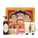 Discover royal indulgence for your skin with this five-piece bodycare ritual featuring Kama Ayurveda’s most-loved essentials. Begin your routine with the Rose & Jasmine Body Cleanser, a sulphate-free formula infused with uplifting essential oils that gently lifts away impurities without drying the skin.The set also includes the Pure Rose Soap, a conditioning bar enriched with Rose Essential Oil, Rose Water, Extra Virgin Coconut Oil, and Jasmine for gentle, aromatic cleansing. Follow with the Shea Lotus Body Butter, a deeply hydrating blend that nourishes, softens, and soothes dry or flaky skin. Complete the ritual with the Hand and Foot Creams, targeted formulas that restore moisture and smoothness to dry, rough areas—leaving your skin soft and supple. This set is elegantly packaged in a box made from 100% recyclable paper, blending sustainable luxury with innovation.
